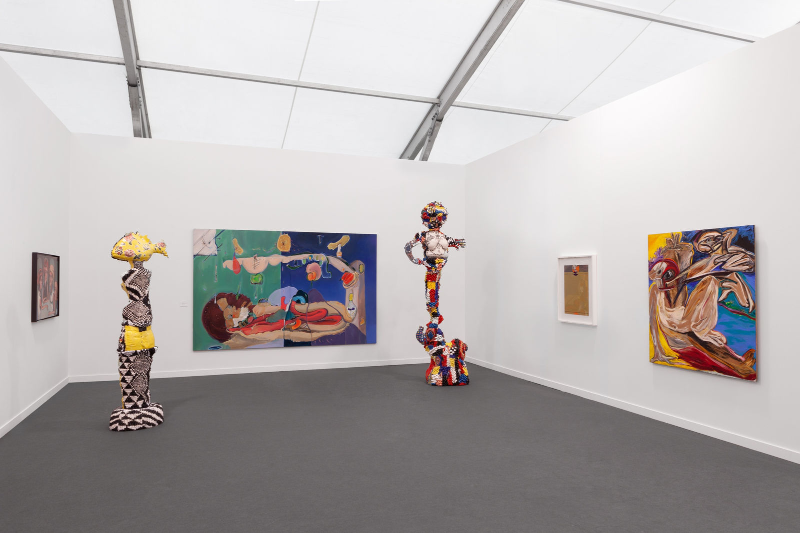 Younger artists – Francesca DiMattio, Jadé Fadojutimi, Ayan Farah and Stefanie Heinze – are showing new painting and sculpture made specifically for the fair. Each artist addresses contemporary politics, considering individual and collective identities.