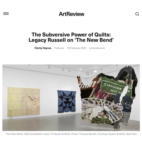 The Subversive Power of Quilts: Legacy Russell on ‘The New Bend’Clarity Haynes, ArtREVIEW, 15 February 2022