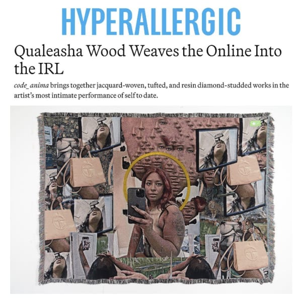 Qualeasha Wood Weaves the Online Into the IRLcode_anima brings together jacquard-woven, tufted, and resin diamond-studded works in the artist’s most intimate performance of self to date.Hyperallergic, 10 September 2024